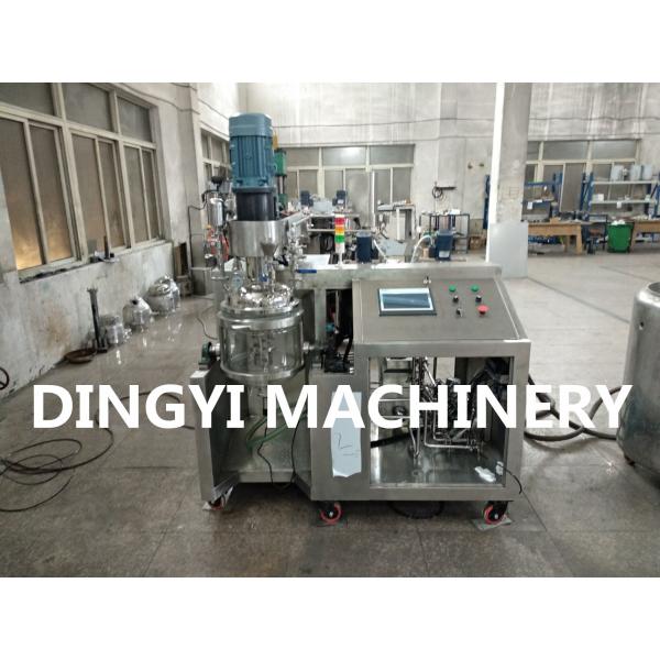 5L stainless steel 316L HMI Vacuum homogenizer mixer for Lab is professionally designed according to the cream manufacturing process of cosmetics and pharmaceutical etc. Products though introducing advanced technology from foreign. The machine is composed of pre-treating tank, main tank, vacuum pump, hydraulic system, tilting system, electric control system and work platform etc. The machine is featured by simple operation, stable performance, good homogenizing performance, high production efficiency, convenient cleaning , reasonable structure, small land area and high automatic degree etc.