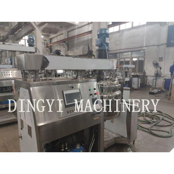 Vacuum homogenizer mixer is composed of pre-mixing tank (water tank and oil tank), vacuum emulsifying tank, vacuum pump, hydraulic system, discharge system, electronic system and operating platform.